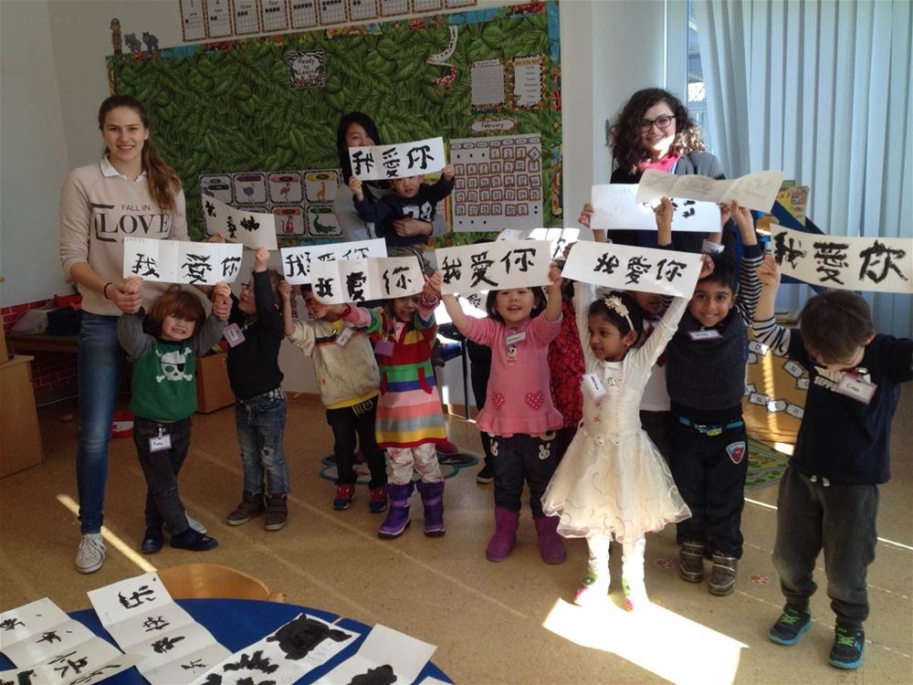 The KG1-A class had three special visitors to help celebrate the Chinese New Year! Three grade 9 students, Fiona Y., Valerie B. and Maddison E., visited the kindergarten class and introduced the students to Chinese Calligraphy. Using paint brushes and black paint, the girls helped the students write, ‘Happy New Year’ and ‘I love you.’ The girls did a great job with the kiddos, and even had an impromptu dance party after they finished their calligraphy. We wish everyone a lucky and happy year of the goat!